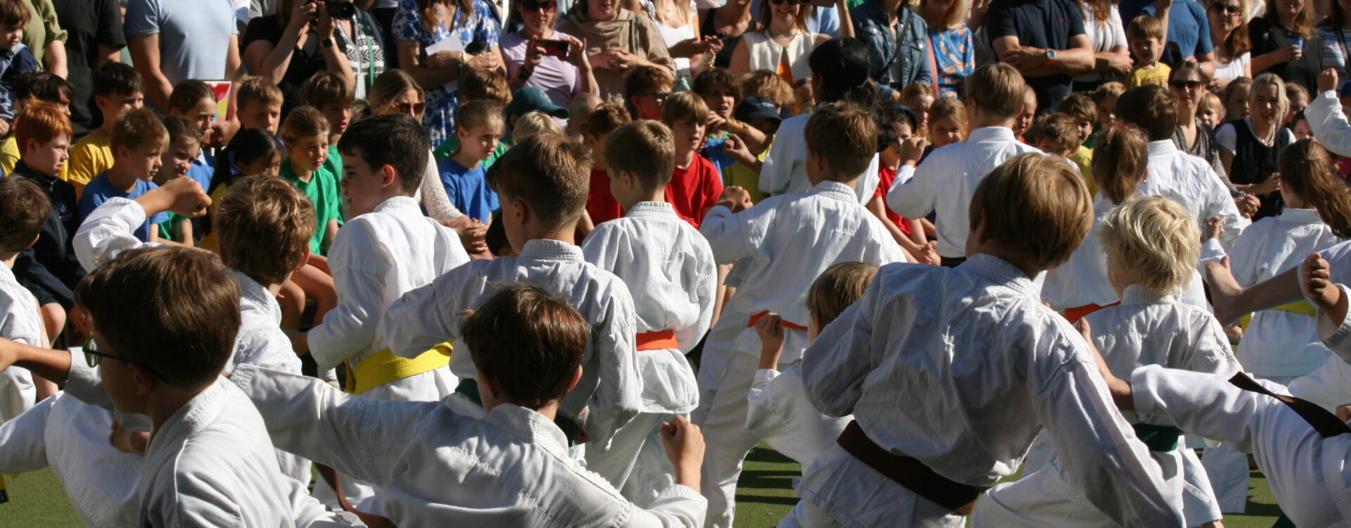 The entire school gathered around the edge of the playground, accompanied by all the staff and many parents to watch our annual ‘Clubs Display’. Having started several years ago as a Karate Display, the event has grown year on year to include our dance and gym clubs and latterly Mr Bruce’s band.