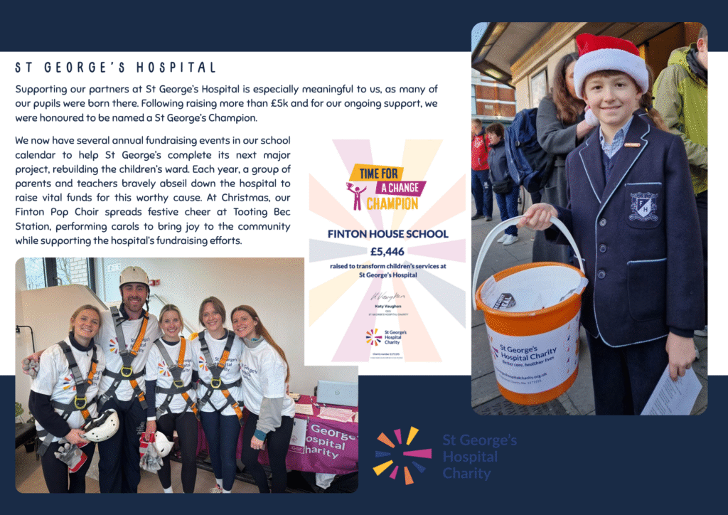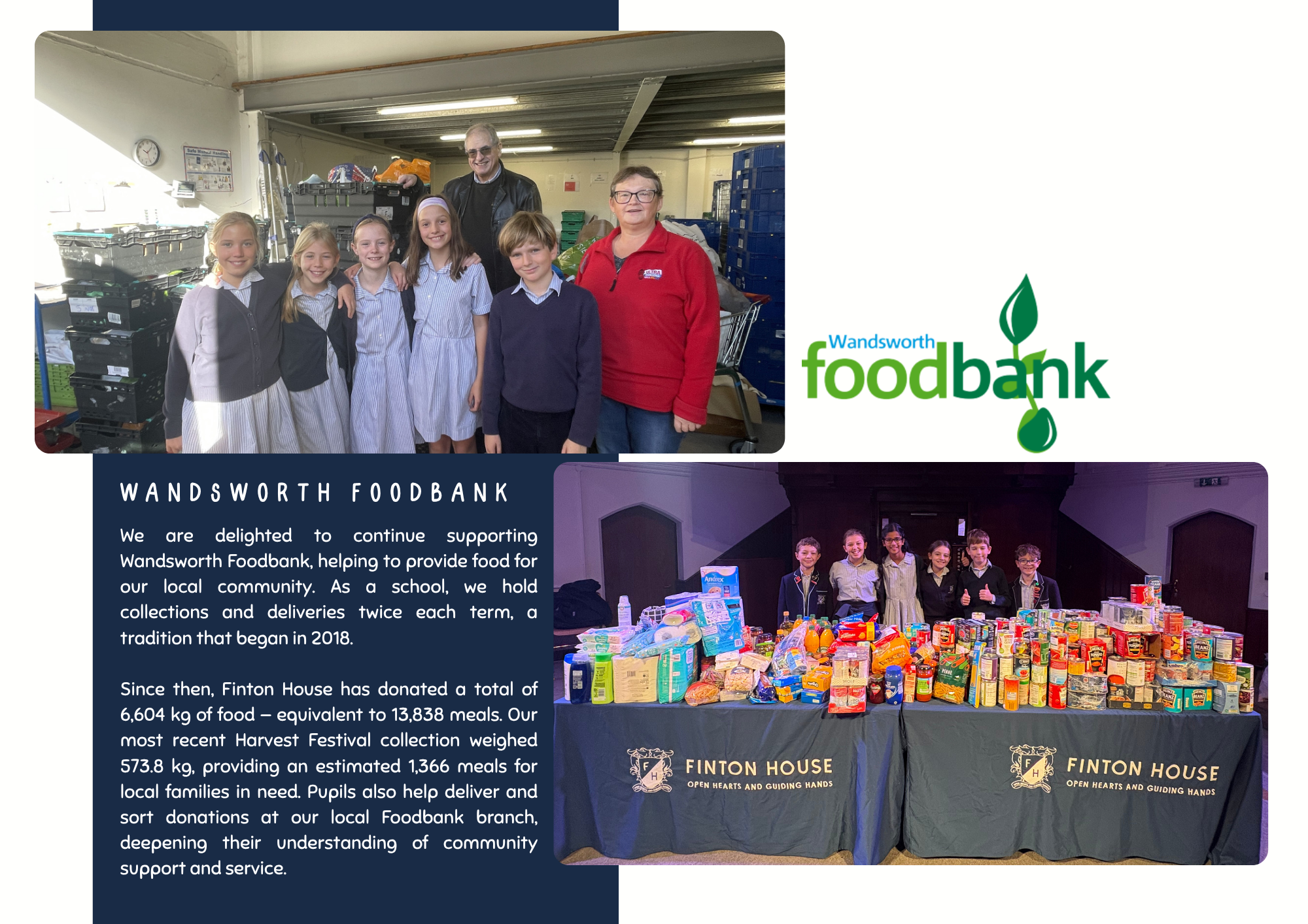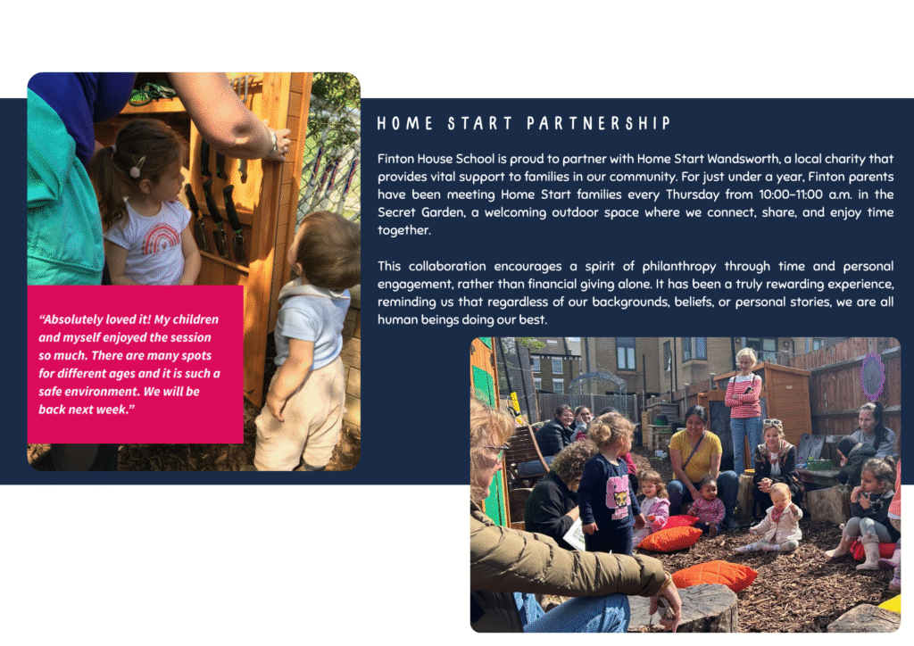 At Finton, philanthropy lies at the heart of our educational ethos. We are fortunate to collaborate with six local partners whose work enriches our community and broadens our pupils’ understanding of giving back.